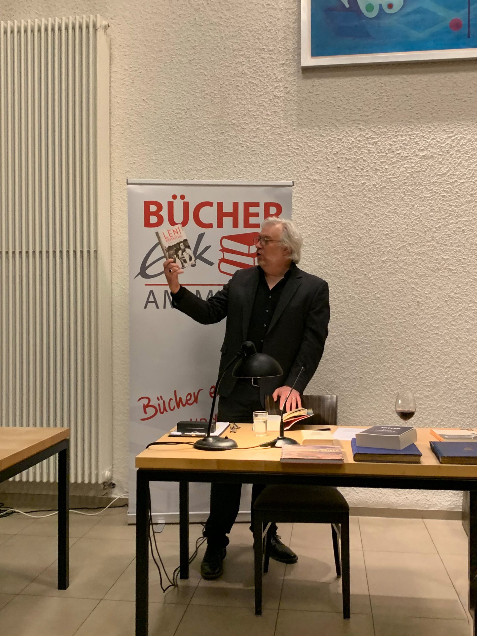 Eine Passage packte mich dann ganz besonders! In dieser hieß es „ Herr Schmidt ich möchte Sie etwas fragen, sind Sie nicht auch der festen Überzeugung, dass eine freie unabhängige Presse ein wichtiges Gut für eine Gesellschaft ist “. Da packt es einen, weil es viele Parallelen zu heute gibt, es bleibt die Hoffnung, dass das Ruder noch rumgerissen werden kann! Sicher war ich nicht der einzige war, den die Geschichte so richtig gepackt hat. Ob es um die Schmierereien an Häusern ging oder auch die Passagen um Leni Riefenstahl! Riefenstahl eine Figur zwischen Ikone und Täterin des 2. Weltkrieges, ein Multitalent. Denn Leni Riefenstahl war nicht nur Schauspielerin, Regisseurin und Produzentin, sondern auch Fotografin gewesen! Verstorben ist sie am 8. September 2003 im Alter von 101 Jähen in Pöcking am Starnberger See. Es war ein stimmungsvoller, packender, zu gleich in jeder Hinsicht auch ein nachdenklicher Abend! Ein guter Abend!