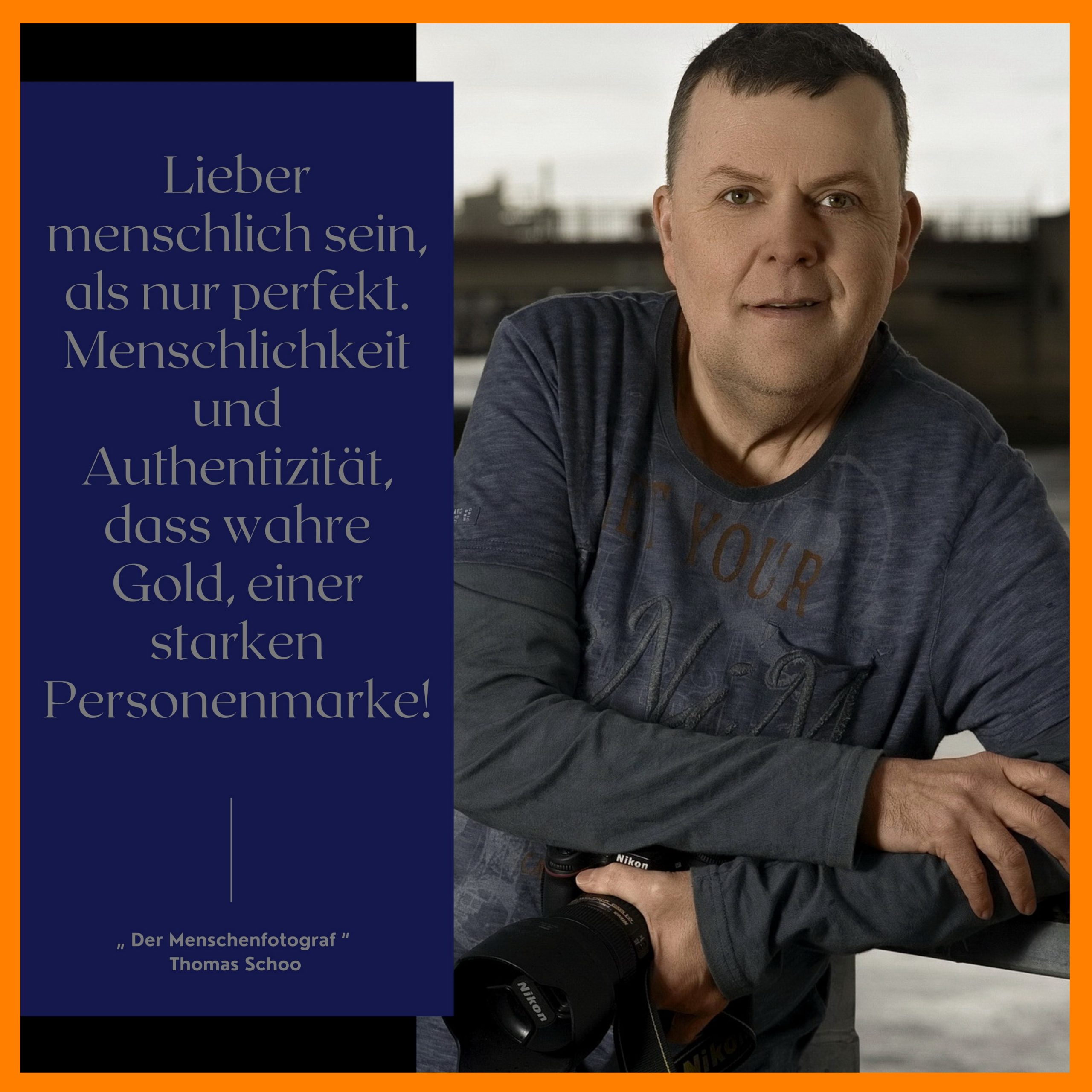 Aus diesem Grund ist Thomas Schoo „ Der Menschenfotograf “ auch nicht Fotograf für schlichte Peoplefotografie. Bei mir stehen der Mensch und seine Positionierung mit Persönlichkeit und als Mensch im Fokus. Thomas fotografiert und kitzelt aus den Menschen ihre tiefste Persönlichkeit heraus! Damit diese mit außergewöhnlichen Fotos Strahlkraft erhalten und Du letztendlich höhere Preise aufrufen kannst. Wer sich mit meinen Werten nicht verbinden kann, für den gibt es auch keine Zusammenarbeit mit mir. Diese Verbindung lässt dich auf den Fotos erstrahlen und macht dich zur Marke statt Dienstleister! Freiheit durch Personal Branding letztendlich das angestrebte Ziel – Freiheit ist unbezahlbar. Diese Freiheit ist der wahre Luxus im Leben!